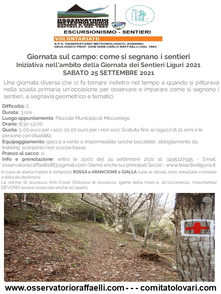 #osservatorioraffaelli #escursionismo #lamialiguria #sentieri #giornatasentieriliguri #mezzanego #valsturla #segnaturasentieri #manutenzionesentieri Appuntamento per Sabato 25 Settembre 2021