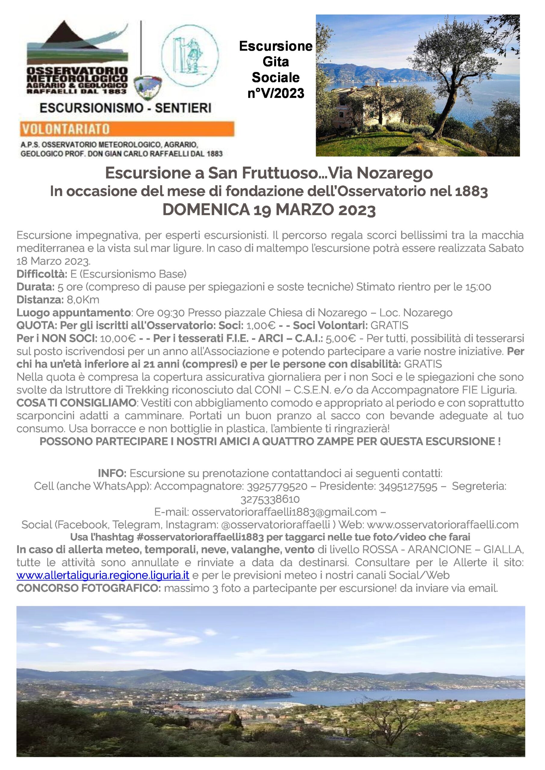 Luogo appuntamento: Ore 09:30 presso piazzale della Chiesa di Nozarego – Loc. Nozarego in Comune di Santa Margherita Ligure (Ge)